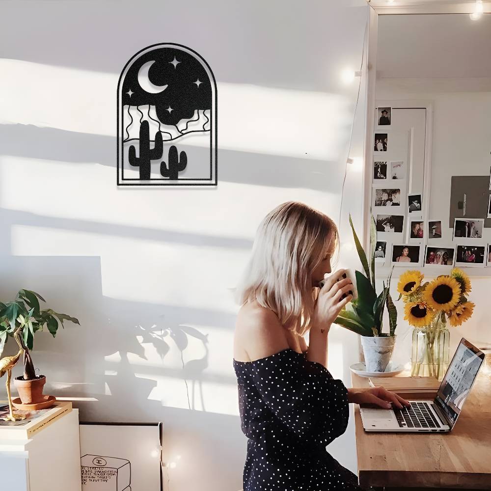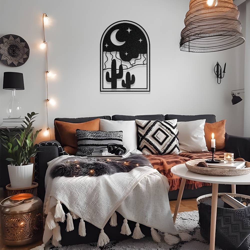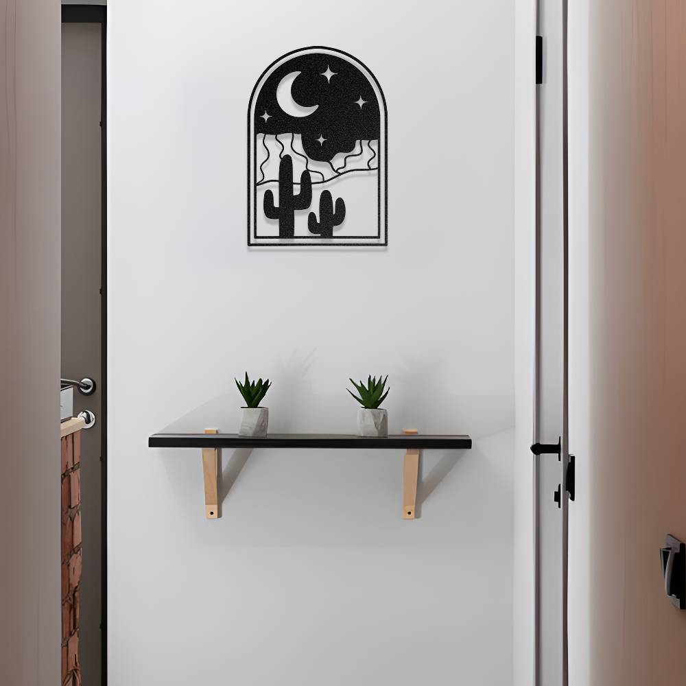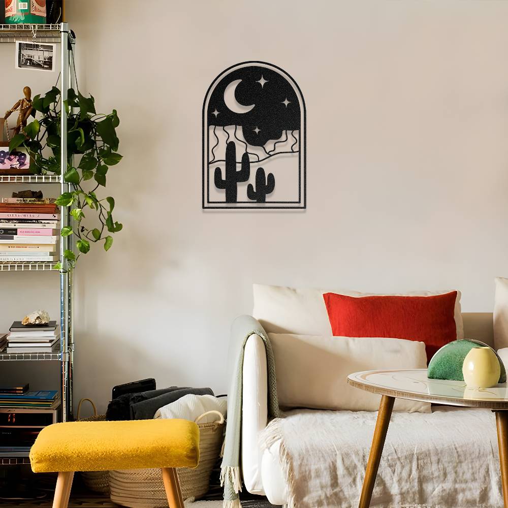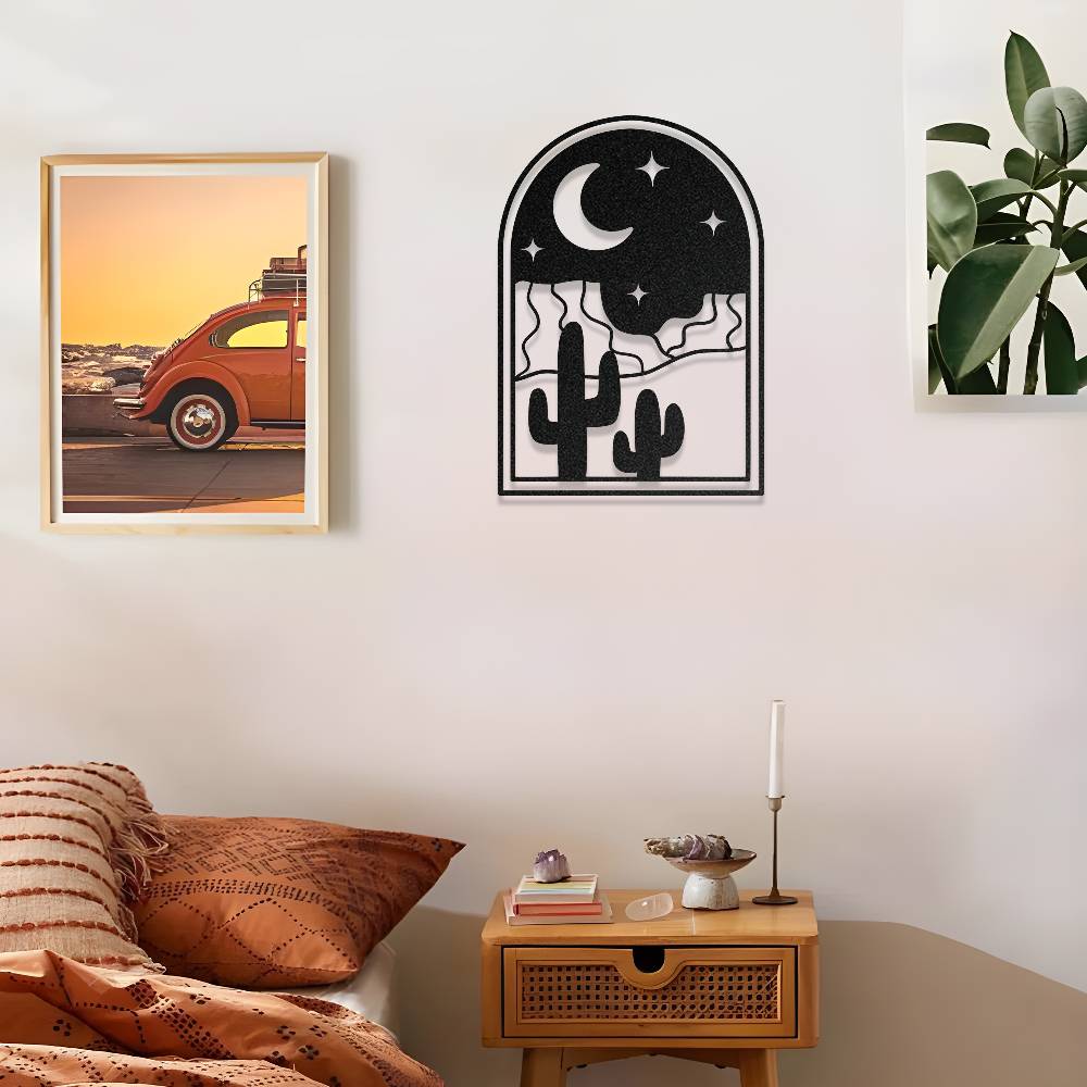 Bohem Çöl Esintisi Kaktüs ve Ay Temalı Metal Duvar Dekoru