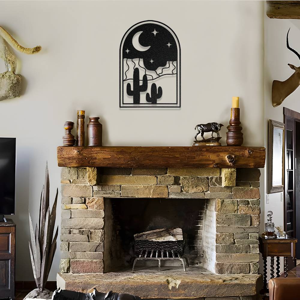 Gökyüzündeki ayın zarafetini ve çölün ikonik kaktüs silüetlerini bir araya getiren bu tasarım, mekanınıza egzotik bir sakinlik katıyor. Kemerli çerçeve yapısı, klasik manzara görsellerine modern bir pencere açarak duvarınızda sanatsal bir derinlik yaratır.