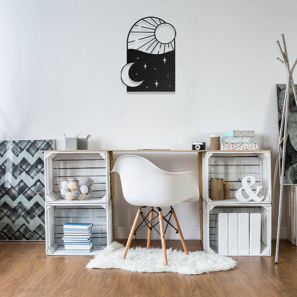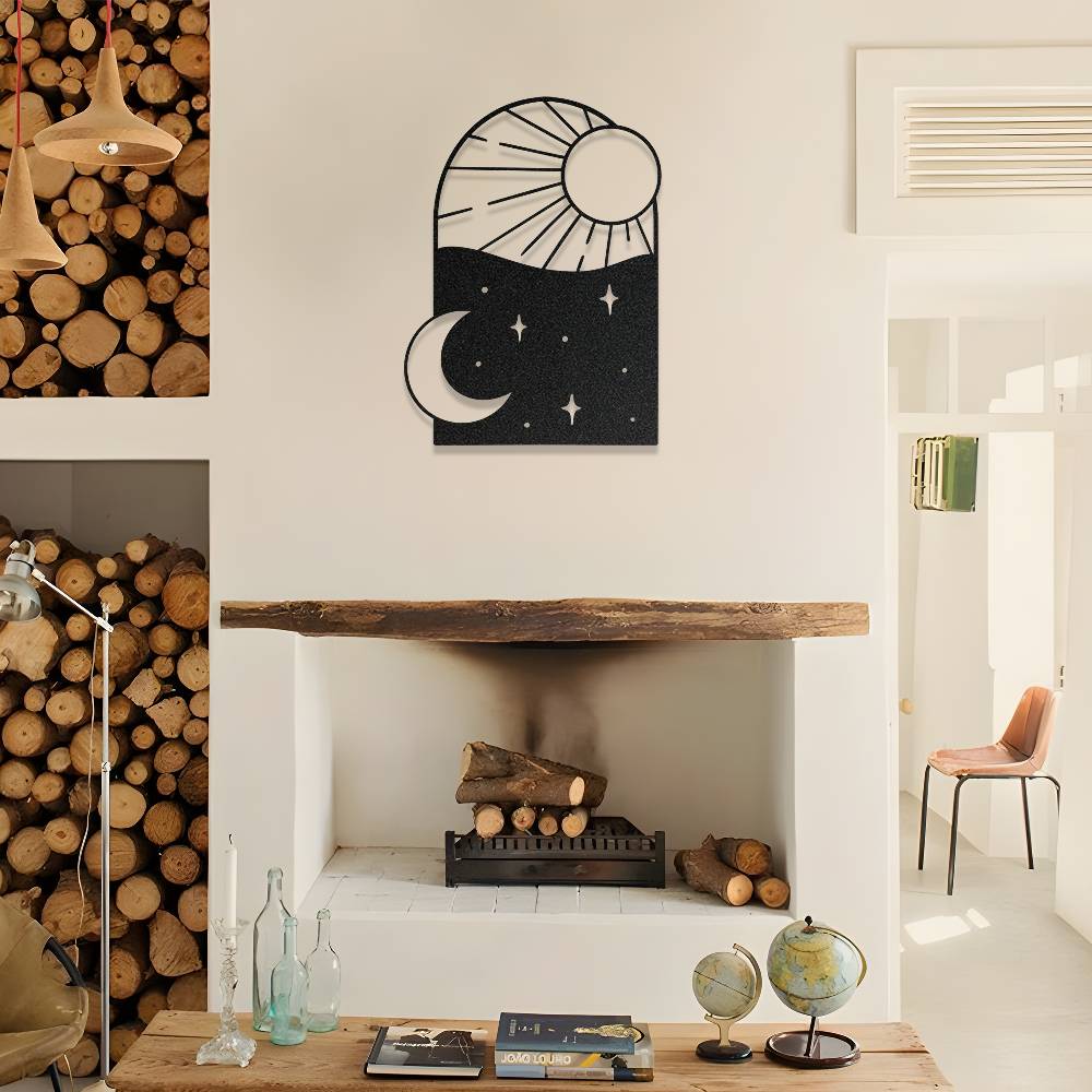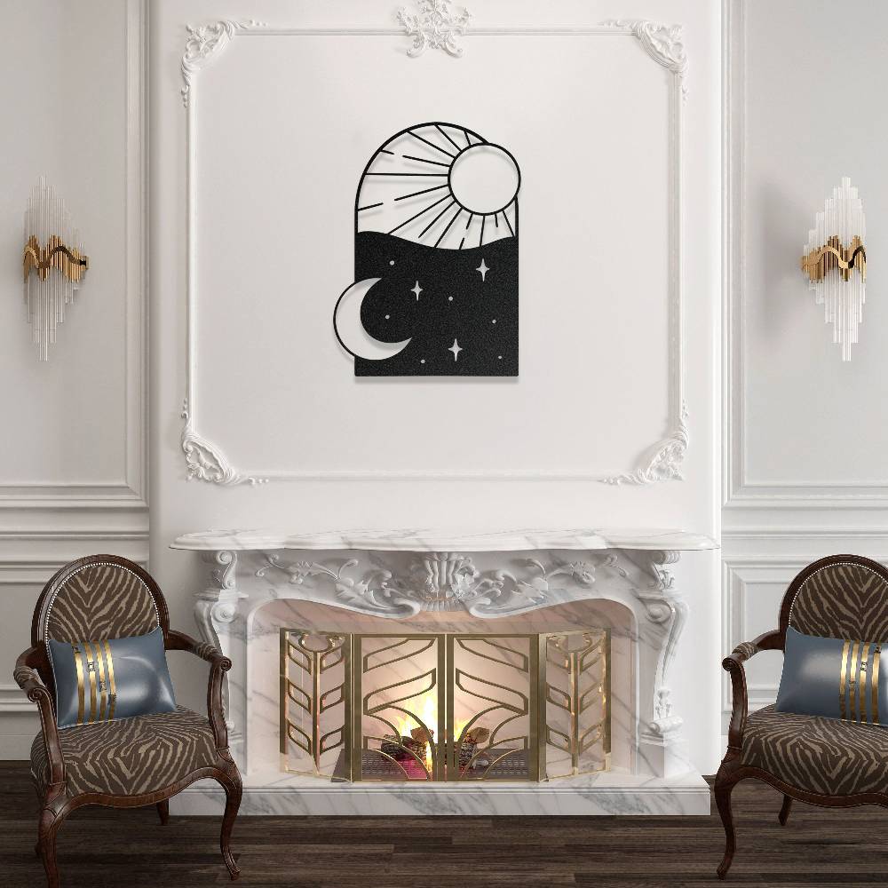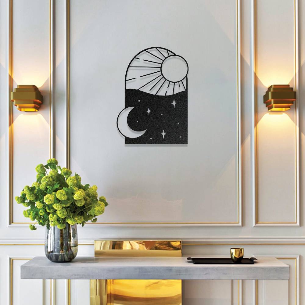 Gece ve Gündüz Temalı Estetik Metal Duvar Dekoru
