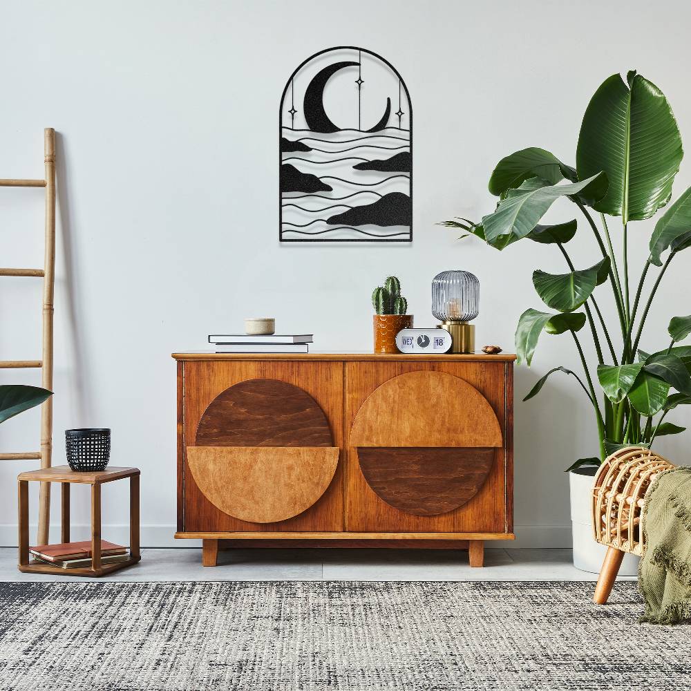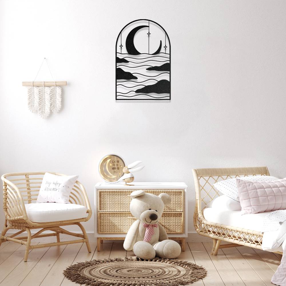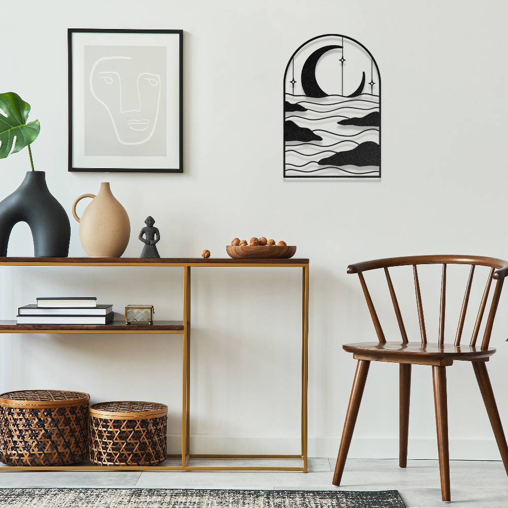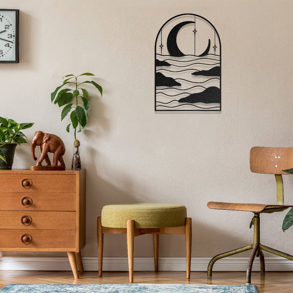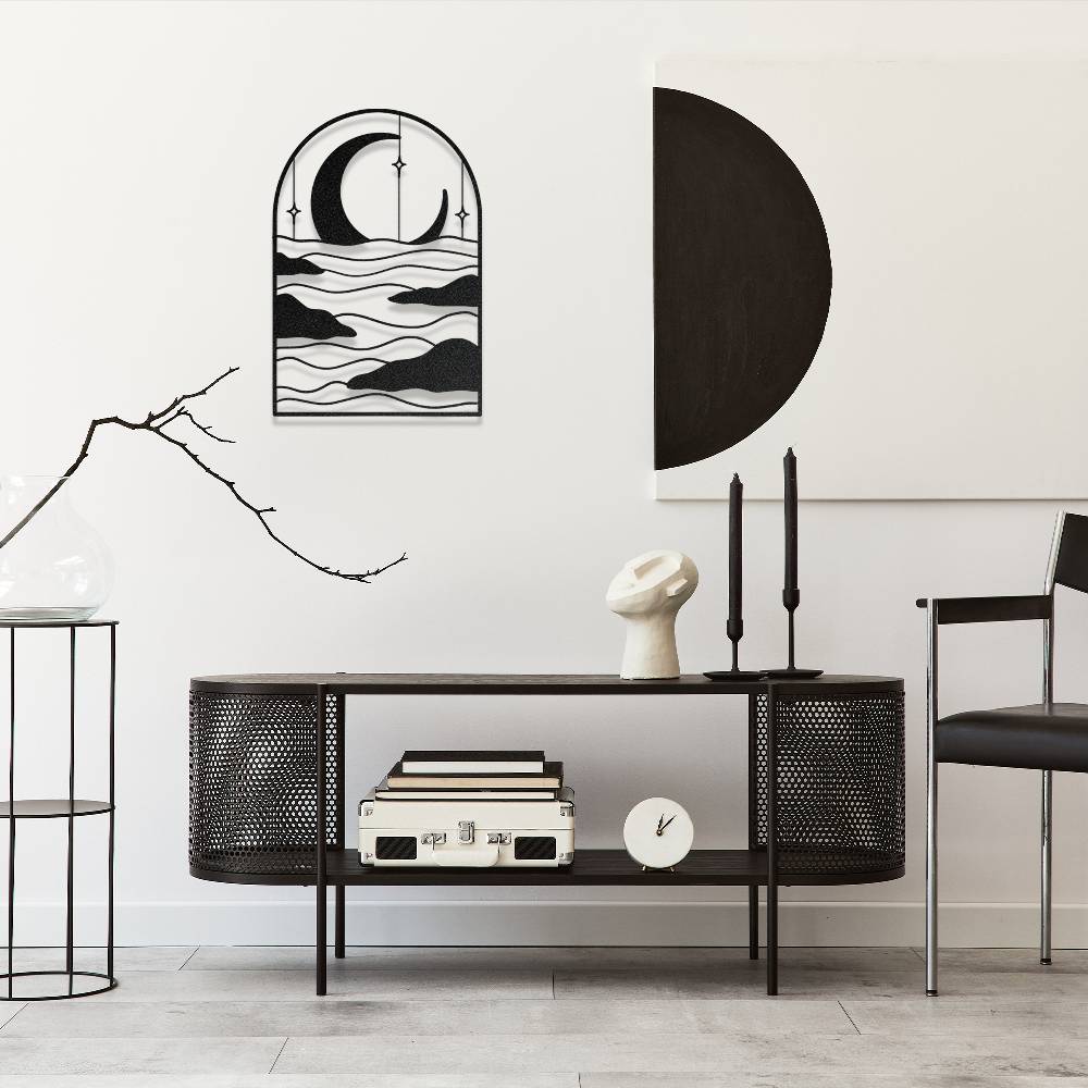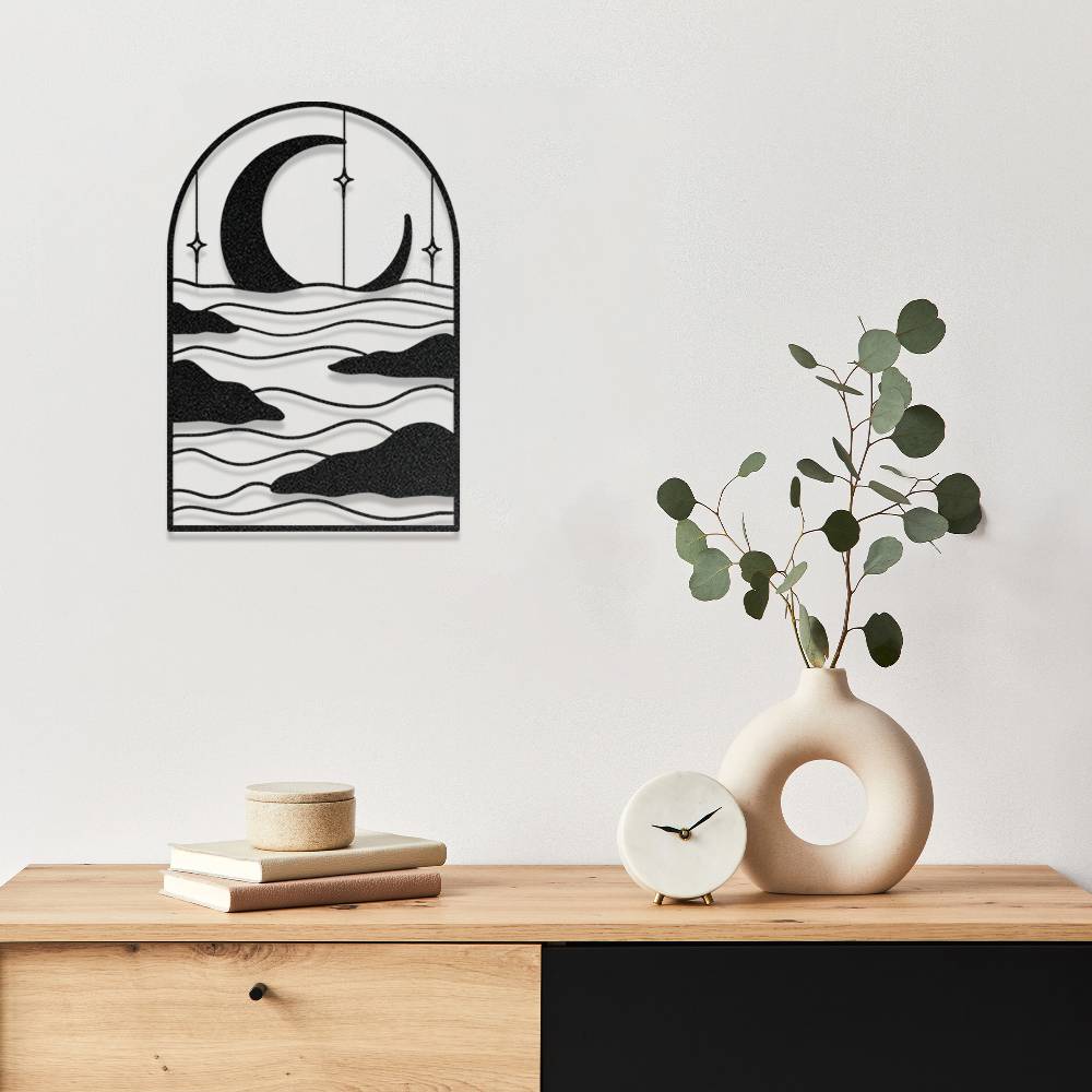 Ay ve Dalga Temalı Modern Metal Duvar Dekoru