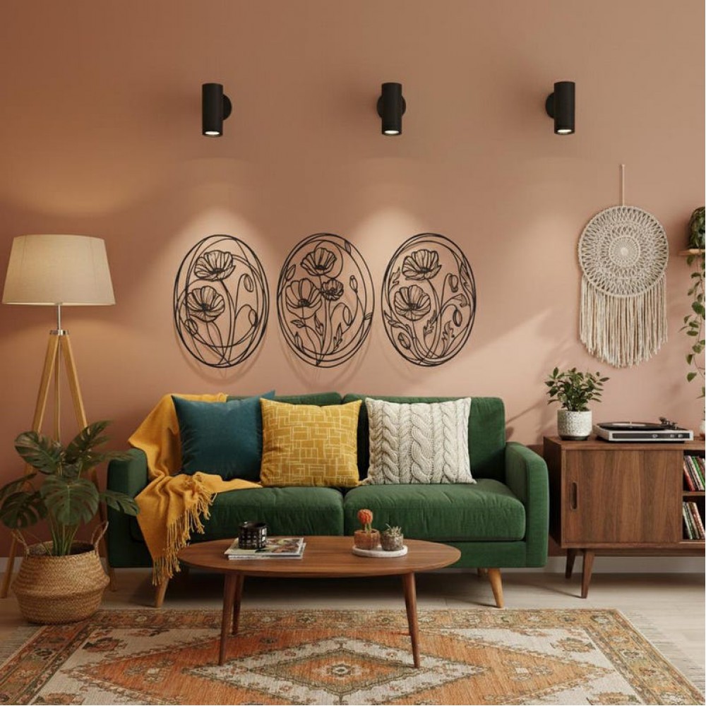 Zarif çiçek motifleriyle tasarlanan bu 3 parçalı metal duvar dekoru, yaşam alanlarına doğal ve şık bir görünüm kazandırır. Oval çerçeve içerisinde yer alan detaylı çiçek desenleri sayesinde duvarlarda sanatsal ve estetik bir atmosfer oluşturur. Salon, yatak odası, antre veya oturma odasında dekoratif bir odak noktası olarak kullanılabilir. Dayanıklı metal malzemeden üretilmiş olup uzun ömürlü kullanım sağlar.