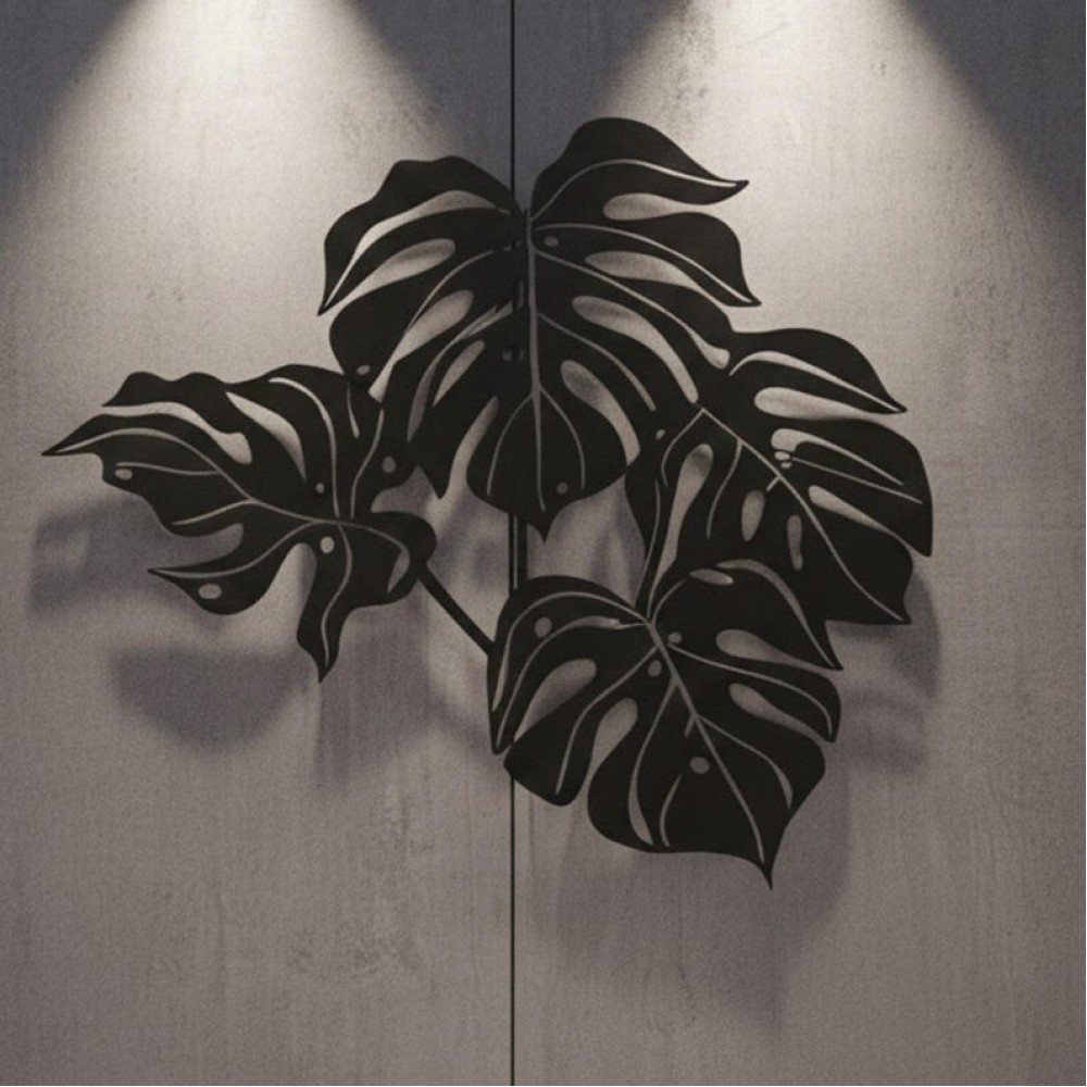 Doğadan ilham alan monstera yaprak tasarımıyla hazırlanan bu metal duvar dekoru, yaşam alanlarına modern ve tropikal bir atmosfer kazandırır. Büyük yaprak detayları ve şık kesim tasarımı sayesinde duvarınızda dikkat çekici bir dekoratif görünüm oluşturur.