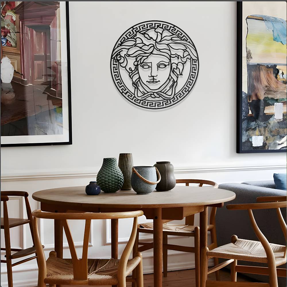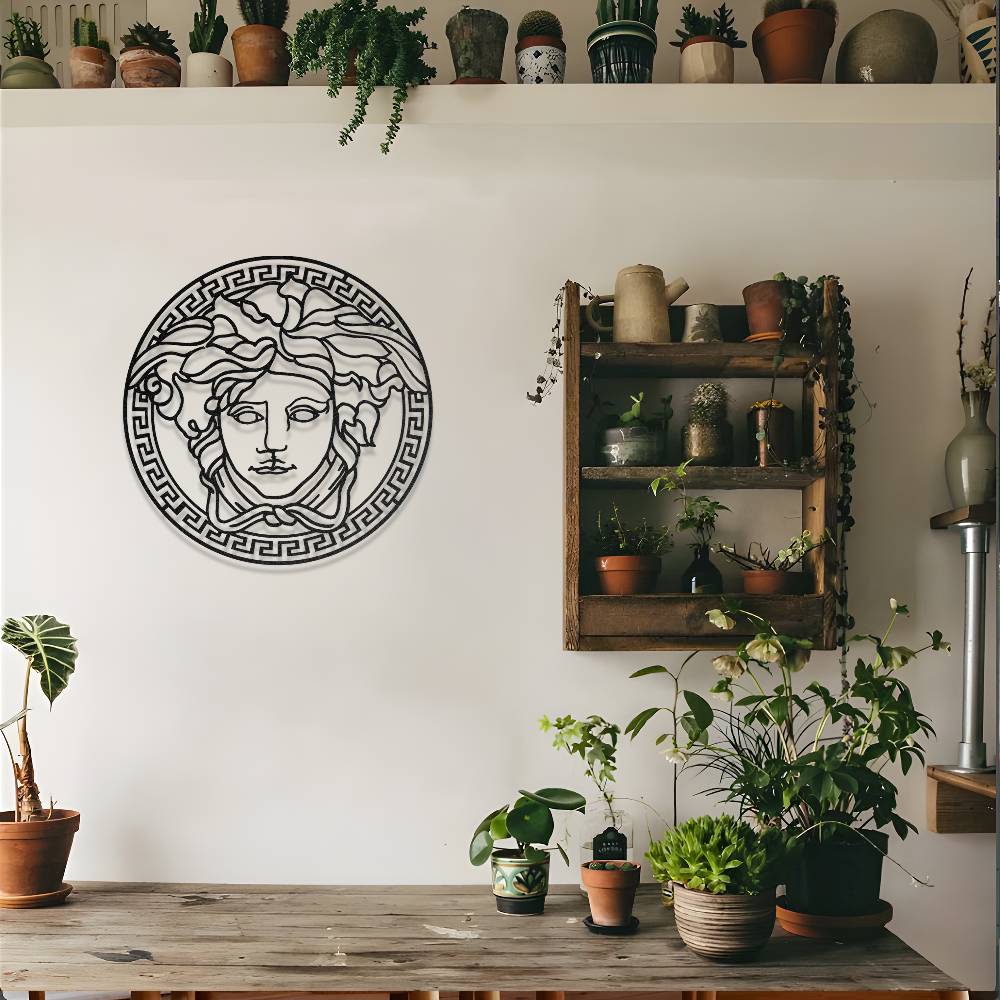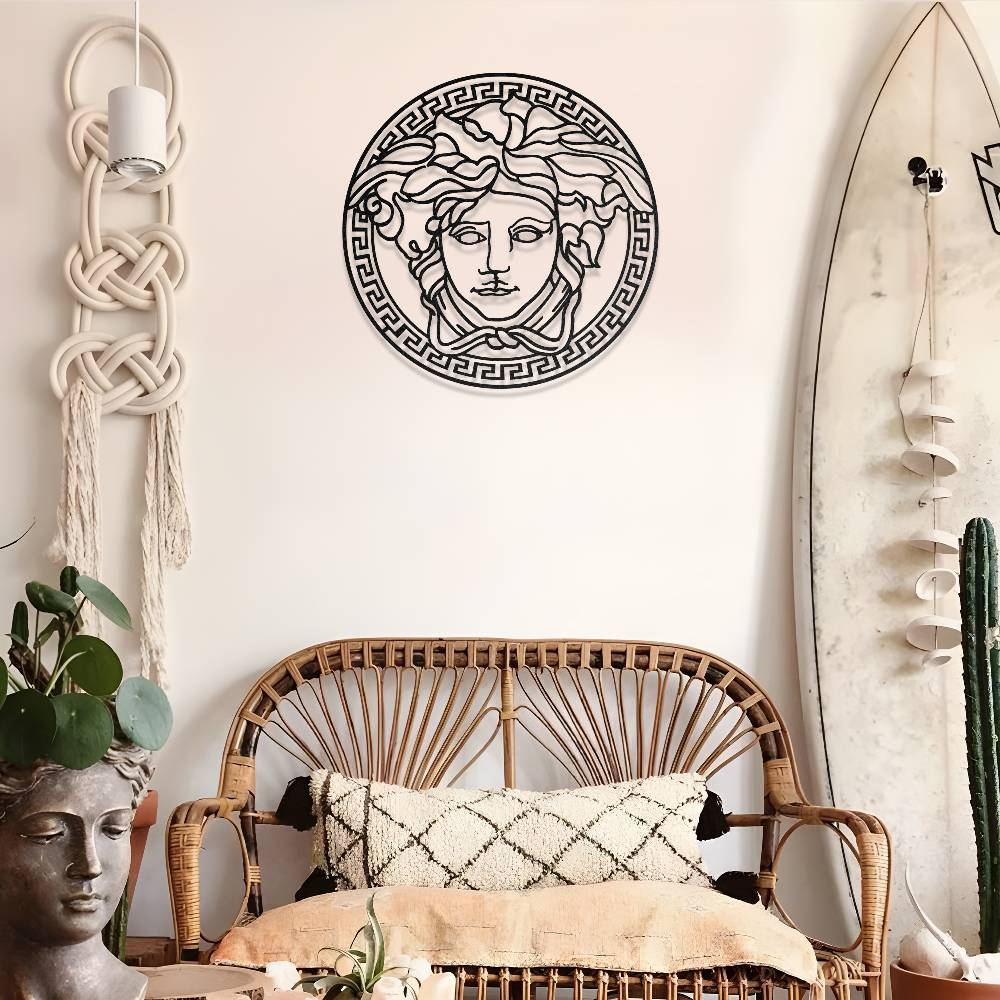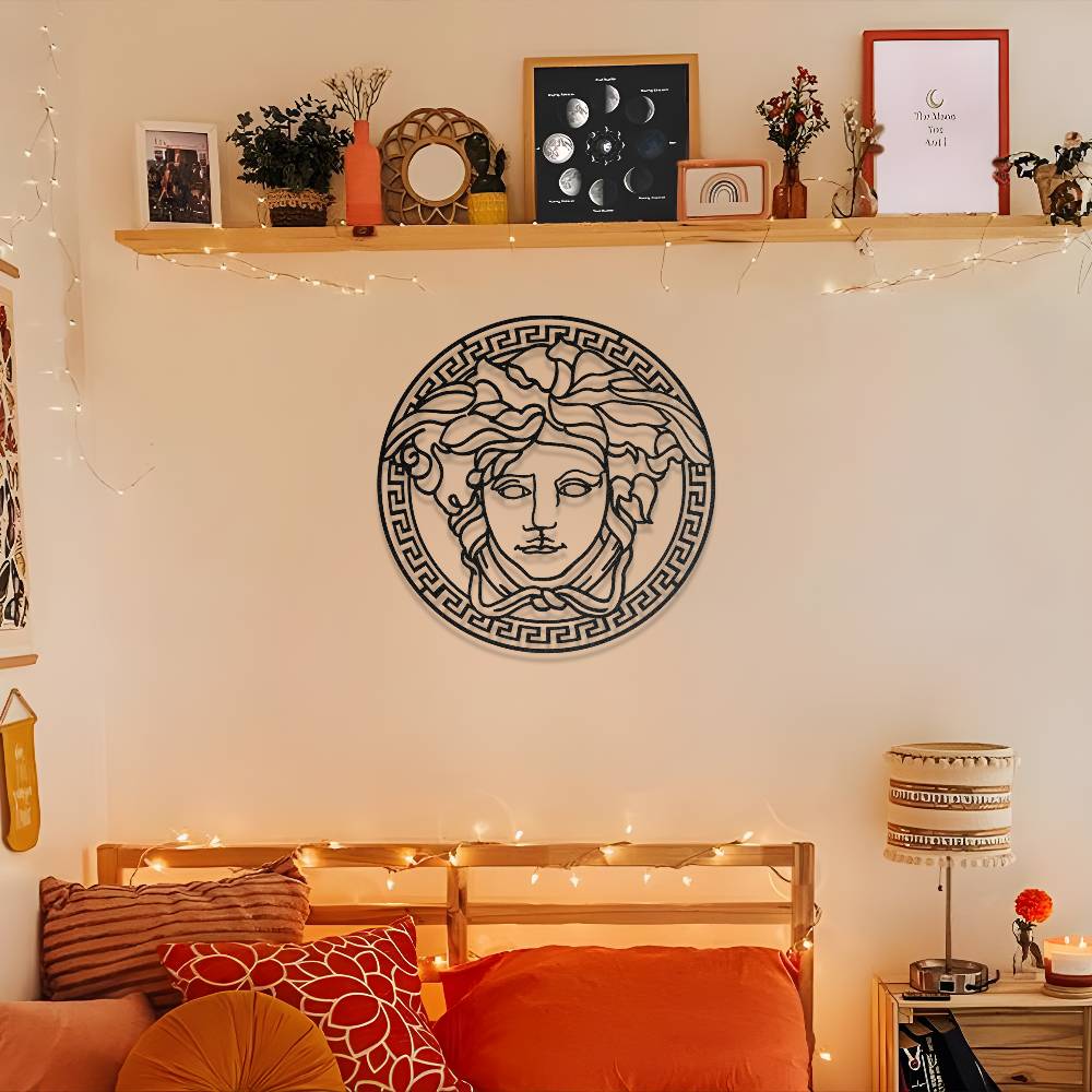 Antik Yunan mitolojisinin en ikonik figürlerinden biri olan Medusa tasarımından ilham alınarak hazırlanan bu metal duvar dekoru, yaşam alanlarına güçlü ve sanatsal bir atmosfer kazandırır. Detaylı saç formu ve klasik Medusa yüz tasarımı, duvarda dikkat çekici ve estetik bir görünüm oluşturur.