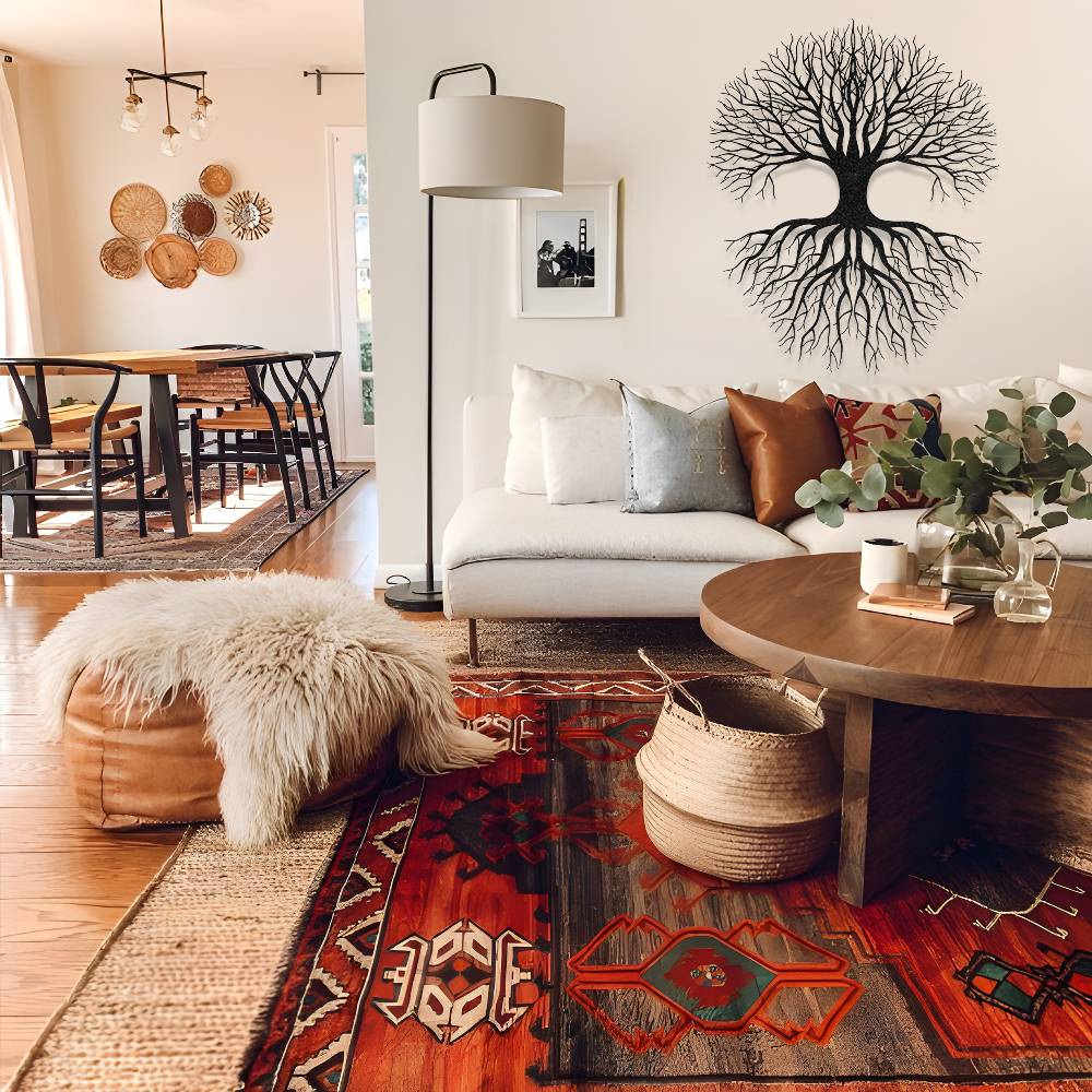 Dayanıklı metal malzemeden üretilmiş olan bu dekoratif duvar sanatı uzun ömürlü kullanım sunar ve duvara kolayca monte edilebilir. Modern, rustik ve bohem dekorasyon tarzlarıyla uyum sağlayarak yaşam alanlarınıza doğal ve estetik bir dokunuş kazandırır.