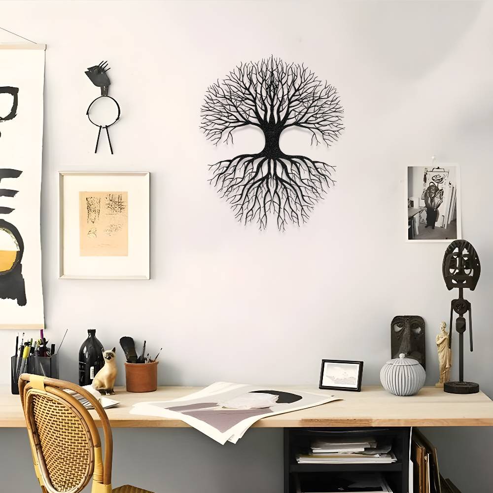 Minimal ve modern çizgilerle tasarlanan bu metal tablo; salon, çalışma odası, ofis veya yatak odası gibi farklı alanlarda dekoratif bir vurgu oluşturmak için idealdir. Detaylı dal ve kök yapısı sayesinde duvar üzerinde sanatsal ve dikkat çekici bir görünüm sunar.