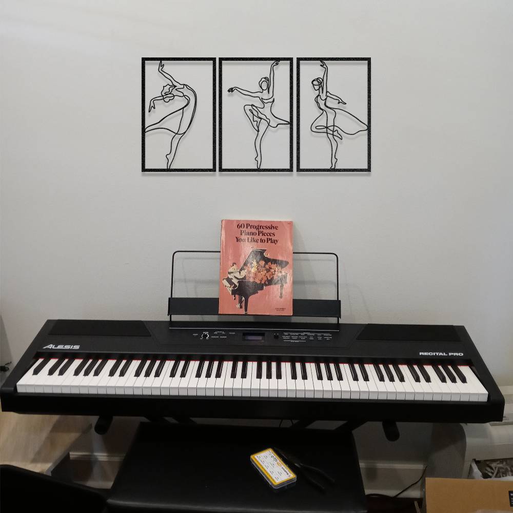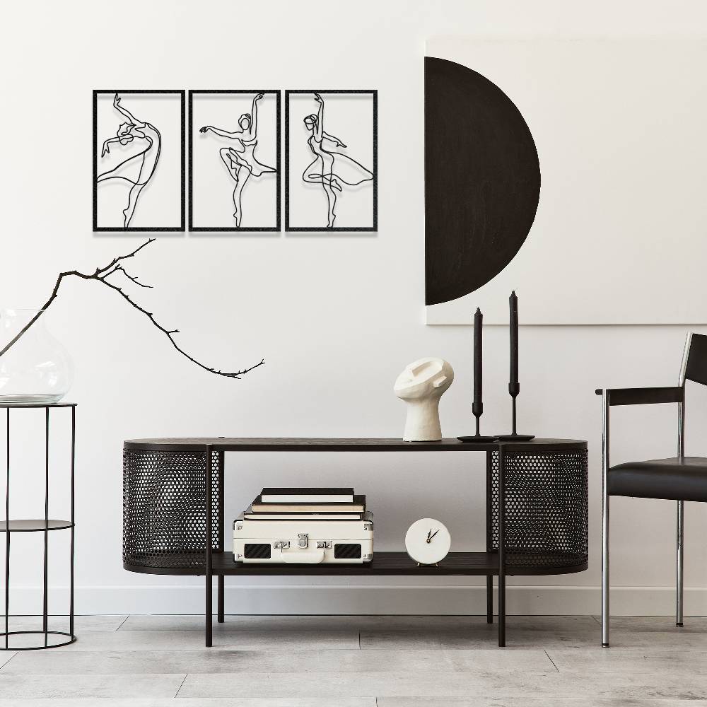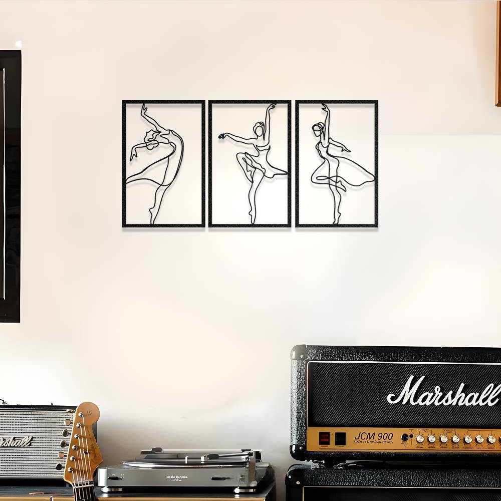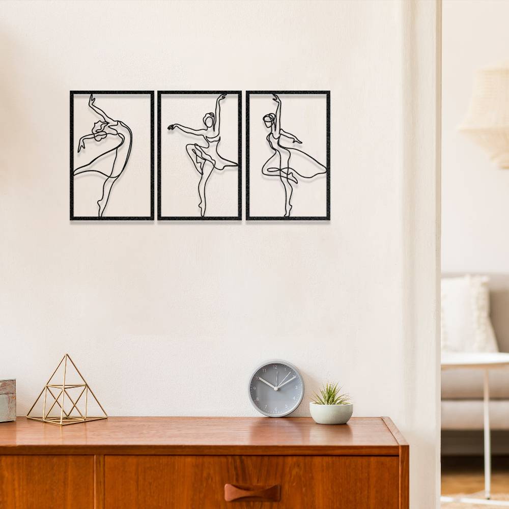 Modern ve sade tasarımı sayesinde salon, oturma odası, yatak odası, çalışma alanı veya sanat stüdyosu gibi farklı mekânlarda dekoratif bir vurgu oluşturur. İnce çizgilerle hazırlanan balerin figürleri duvarda zarif ve sanatsal bir atmosfer yaratır.