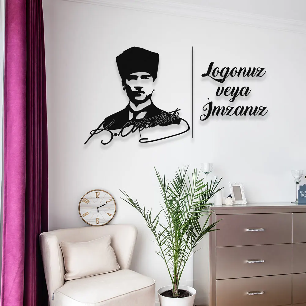 NEW JARGON Mustafa Kemal Atatürk Potresi İmzası ve Kişiye Firmanıza Özel Metal Tablo 50x40 - 50x45 cm